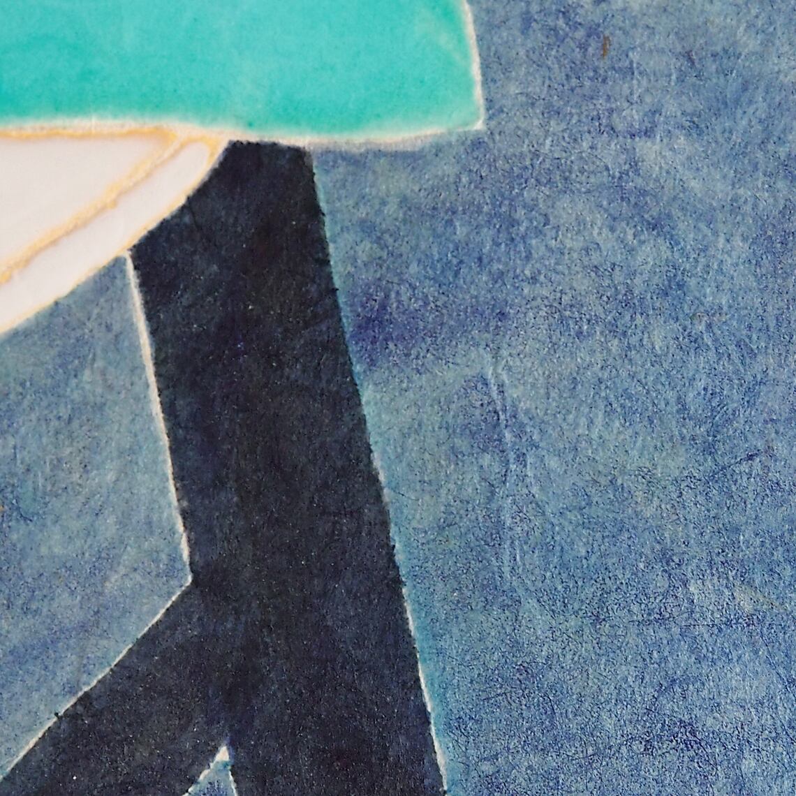 和紙に岩絵具、胡粉、墨などを使用して描いています。