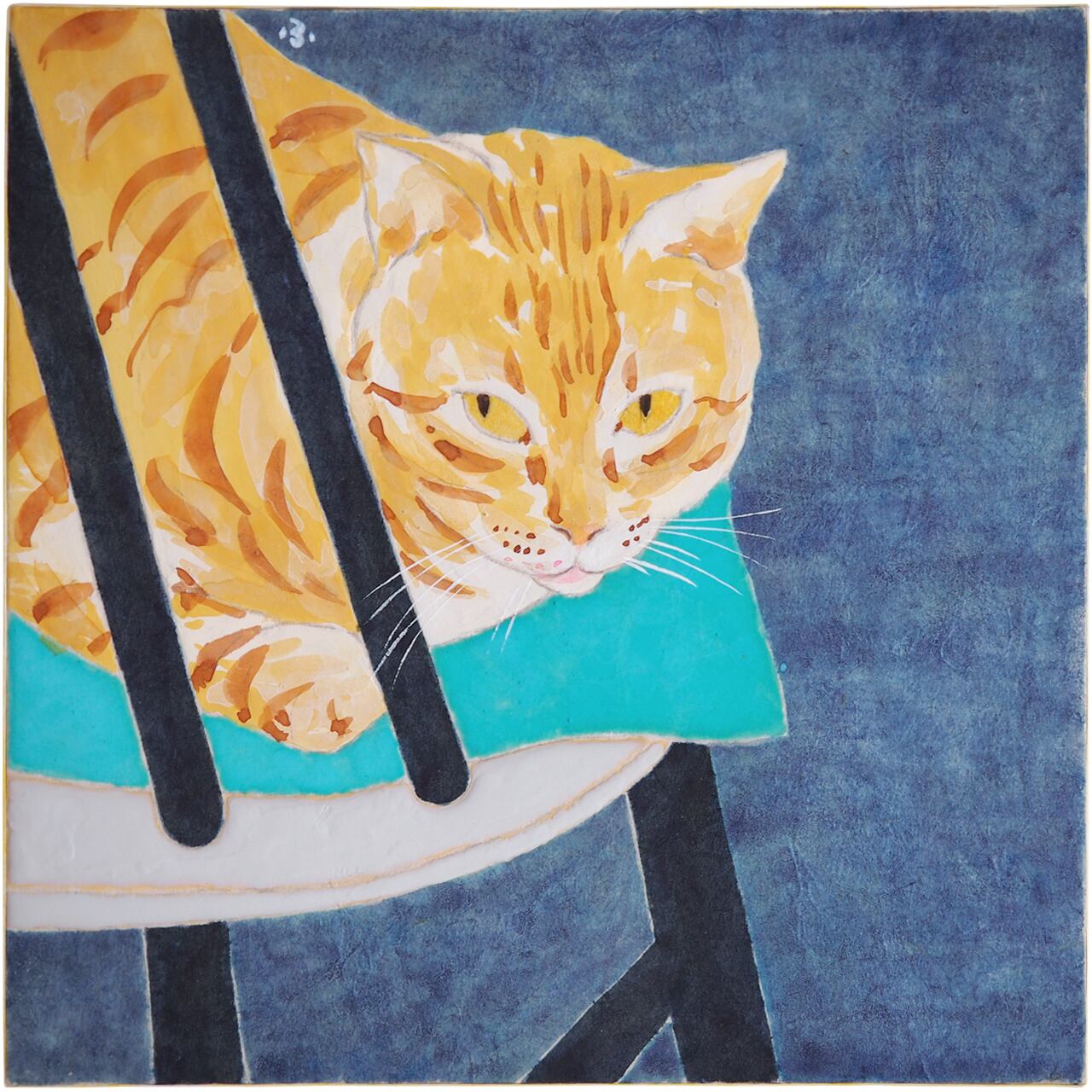 お気に入りの椅子の上でくつろぐ愛猫のうづら(♂)。